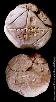 As we see, the number 1.24.51.10 noted on tablet YBC 7289 reflects an impressive approximation of the square root of 2. This number is also attested in a list of coefficients dated to the same period, YBC 7243, where it appears in line 10 and is defined as the coefficient to be used to calculate the diagonal of a square: “1.24.51.10 diagonal, equal side”. In other mathematical texts, the approximation of the square root of 2 commonly used is 1.25, a much less accurate value.