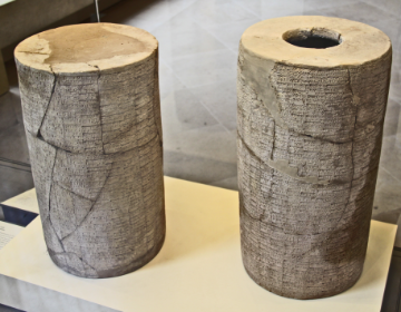 A set of large cylinders inscribed with a Sumerian hymnic composition in which king Gudea receives instructions in a dream to build a temple. More information...